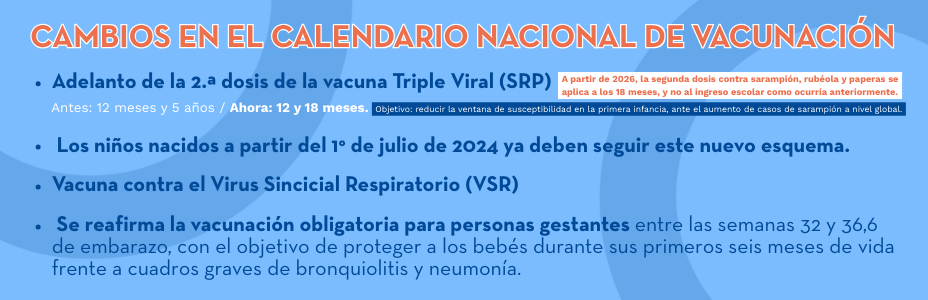 Asimismo, compartimos algunas actualizaciones relevantes del Calendario Nacional de Vacunación, vigentes a partir de 2026, que pueden impactar en colaboradores y sus familias.